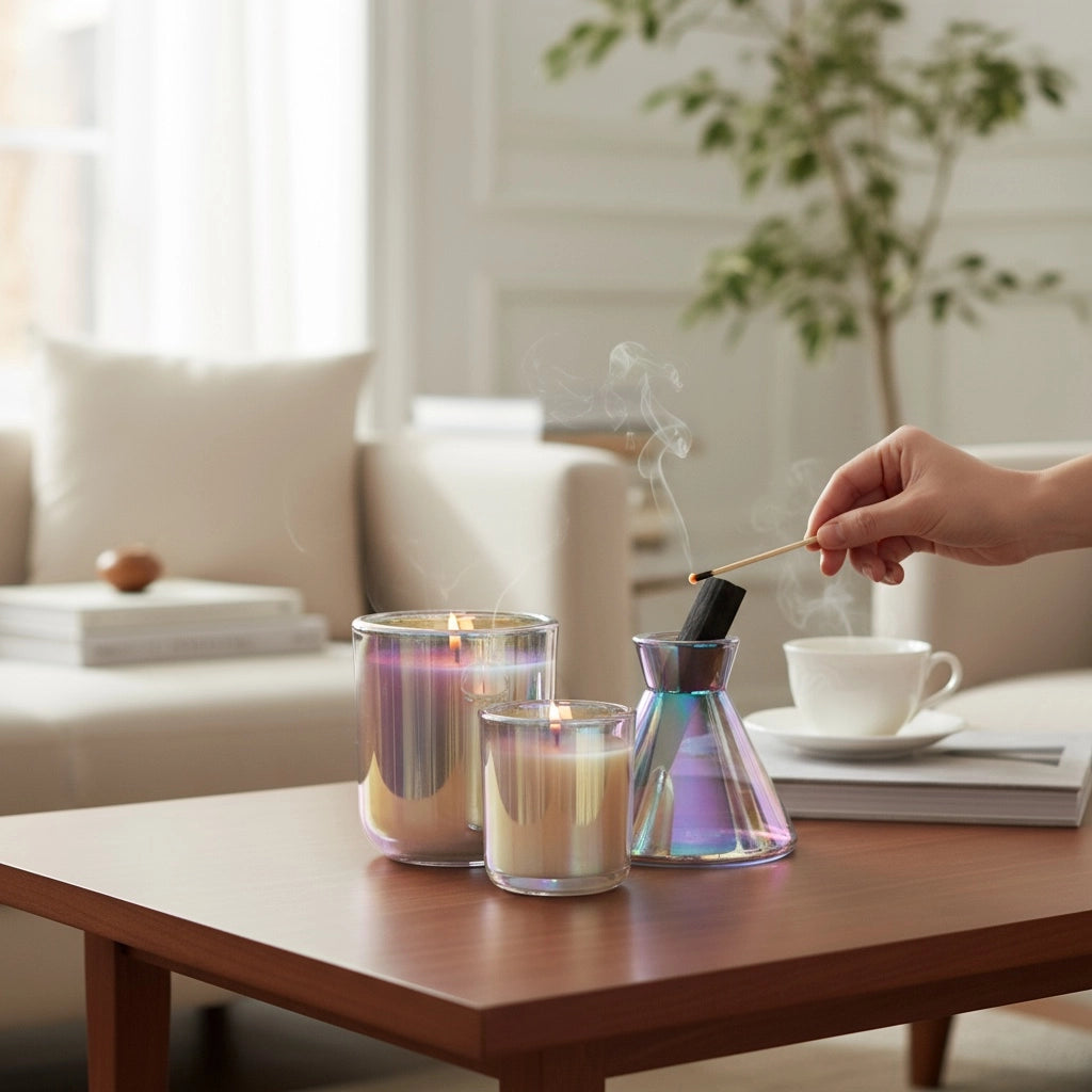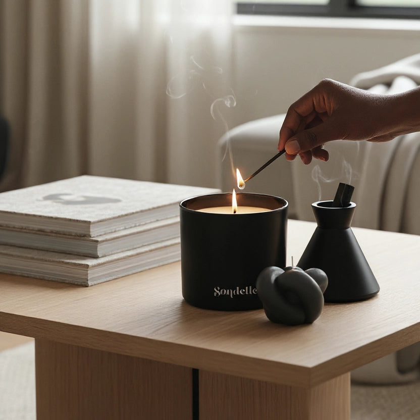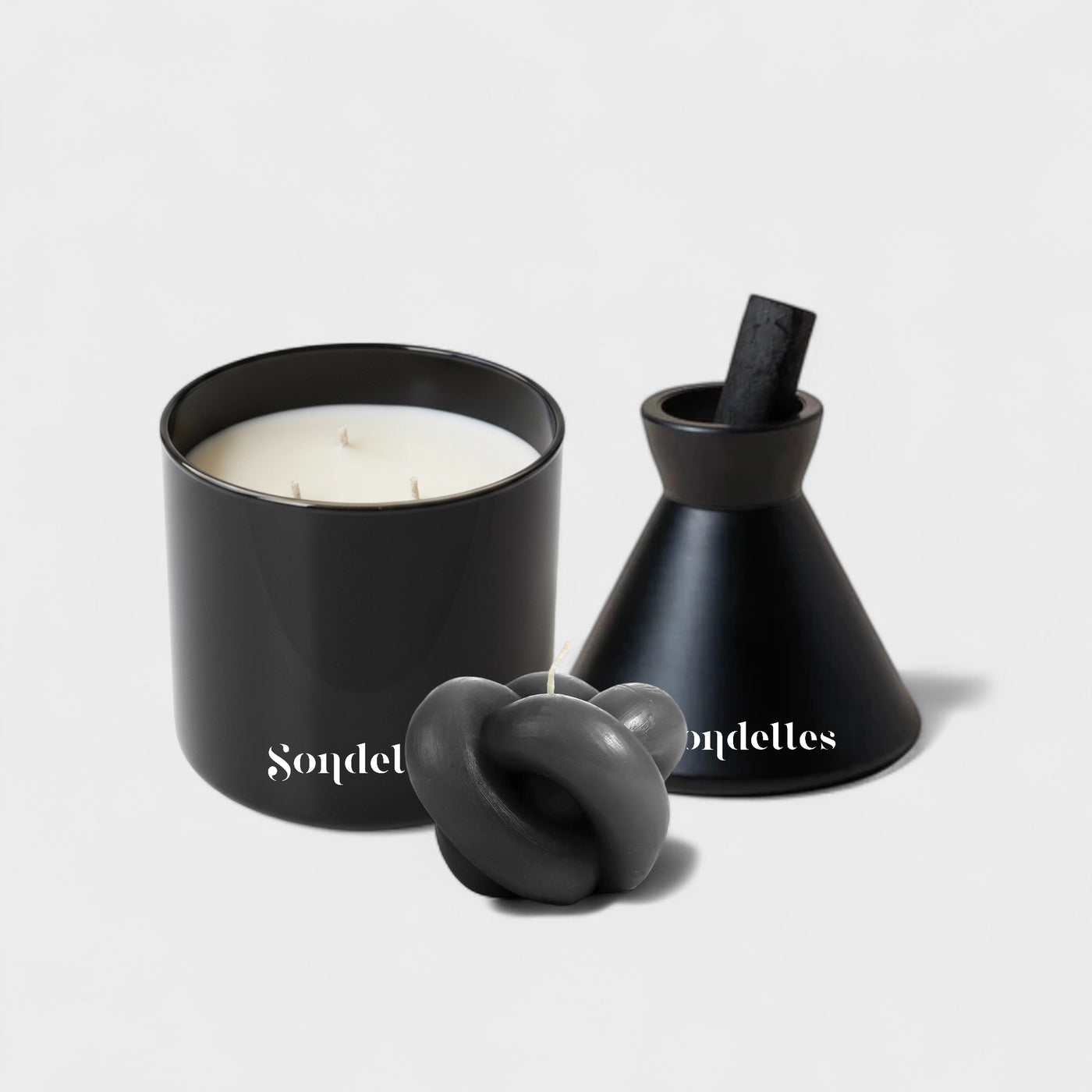 Optez pour une touche de sophistication grâce à un ensemble sur mesure : Bougies parfumées + un diffuseur à bâton de charbon purifiant, emballés dans un magnifique paquet cadeau spécialement choisi selon vos goûts. 🎁